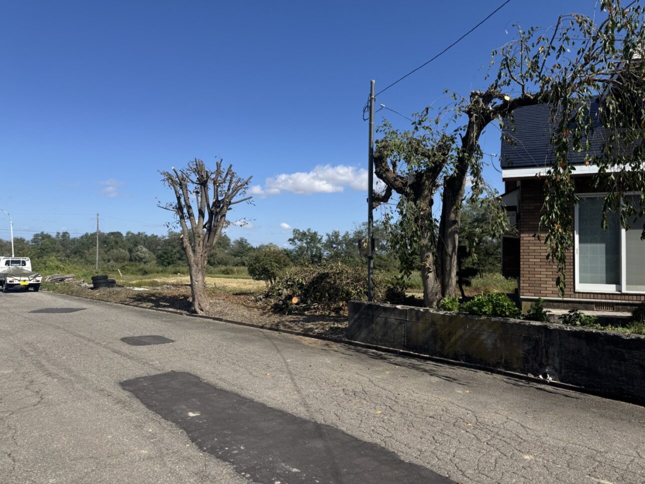 今回は、道路に面していたので通行車両に注意しながら、伐採をしていきました。