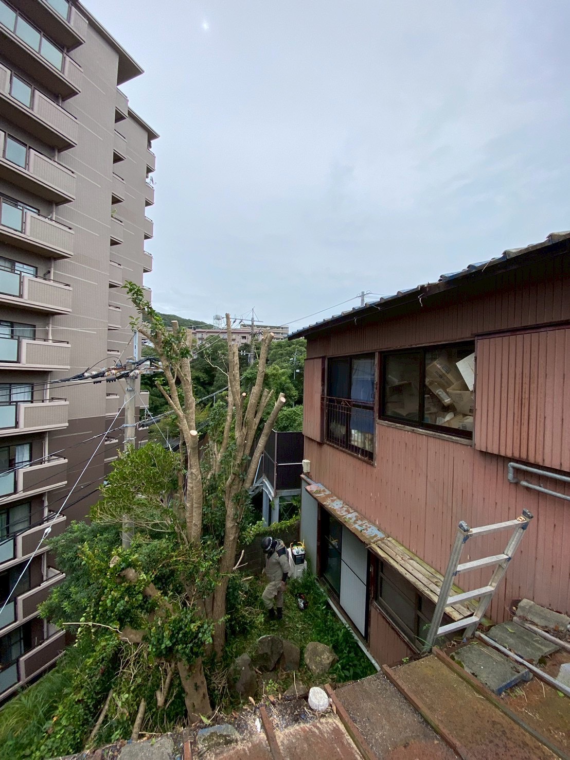 佐賀市の管理会社様より、「幹も太く高木になりすぎている木がある伐採してほしい。」とご相談がありました!